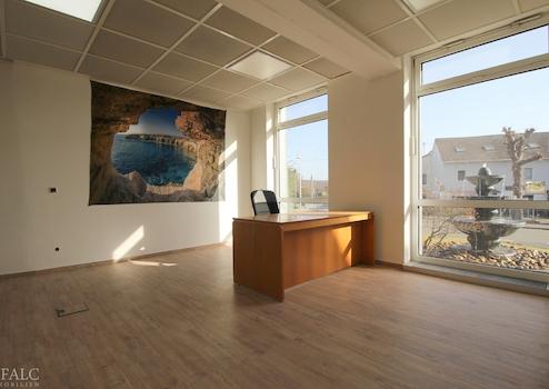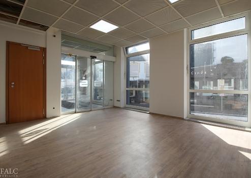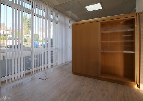 Sie profitieren von einem repräsentativen Eingangsbereich mit automatischer Schiebetür und großzügigen modernen Büro-, Praxis- oder Verkaufsflächen. Die Gewerbefläche teilt sich aktuell in eine Großfläche mit ca. 87 m² und drei Büros mit ca. 35 m², ca. 22 m² und ca. 12 m² auf. Alle Räume sind mit großen Fensterflächen versehen und sind somit hell und freundlich. Das Beleuchtungskonzept sorgt für zusätzliche Helligkeit. Sollte es zu hell sein, sorgen Jalousien für Verschattungsmöglichkeiten. Eine Teeküche, sanitären Anlagen sowie weitere Neben- und Kellerräume befinden sich im Untergeschoss.