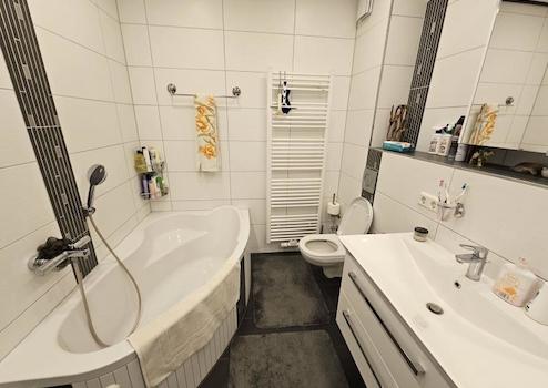 In dem Haus ist eine Einbauküche vorhanden. Das Bad des Hauses verfügt über eine Acrylbadewanne und eine Dusche. Eine Gästetoilette ist natürlich auch vorhanden. Die Dusche verfügt über eine Duschkabine, nicht nur über einen Vorhand.