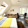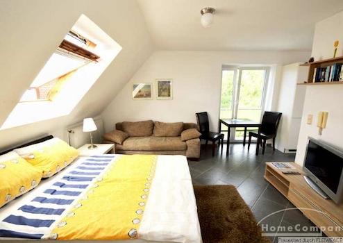 Diese Wohnung befindet sich im Dachgeschoß eines Einfamilienhauses und bietet alles was zum möblierten Wohnen dazugehört. Die Küche befindet sich in einer Zimmernische. Der kombinierte Wohn und Schlafbereich ist geschmackvoll eingerichtet. Die Wohnung ist perfekt für 1 Person.