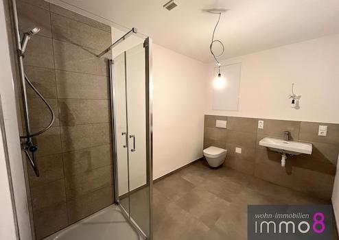 Im hochwertigen Bad mit Dusche sind Anschlüsse für die Waschmaschine installiert. Alternativ können die Anschlüsse in der Abstellkammer eingebaut werden.