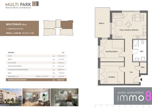Diese 3-Zimmer-Wohnung befindet sich im 1. Obergeschoss des Hauses L und ist Bestandteil des Neubau-Projektes MULTI-PARK in Schrobenhausen.