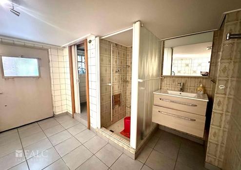 Praktisch: Ein zweites, vollwertiges Bad befindet sich im Kellerbereich neben der Waschküche und dem Gartenausgang.