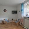 ### Please note the availability date! Bitte das Verfügbarkeitsdatum beachten! ### möbliertes Wohnhaus, neu renoviert, mit eigenem Hof und PKW-Stellplätzen; WLAN, Wäschewechsel und Reinigungsservice inklusive; untere Etage: großer Eingangsbereich mit Flur und Garderobe, Zimmer 1 mit Einzelbett, kleiderschrank und Gaerderobe; Zimmer 2 mit Doppelbett, Kleiderschrank, Kamin und Sitzecke; separate Küche mit Esstisch; Bad mit breitem Waschtisch, Dusche, WC, Waschmaschine und Trockner; im Obergeschoss: Flurbereich mit Ausgang zum Dachbalkon; Zimmer 3 mit Doppelbett, Kleiderschrank, TV und Sitzecke; Zimmer 4 mit Einzelbett, Kleiderschrank und TV; separater Aufenthaltsraum mit Sofa, zwei Sesseln und TV; Bad mit Dusche und WC; zum Innenhof gehört eine eigene geschützte Terrasse mit Kamin; Endreinigung Mietersache; Pauschalmiete 3.800,00 Euro (7% Ust ausweisbar!); Vermietung an max. 5 Personen; Kaution 5.000,00 Euro; Mindestmietdauer 3 Monate; Pflichtangaben zum Energieausweis: Energieausweis liegt vermieterseits nicht vor, daher entfallen diese Angaben vorerst (§87, GEG)