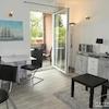 Diese helle und gut ausgestattete Zwei-Zimmer-Wohnung wurde 2019 renoviert. Das Wohnzimmer schließt an die offene Küche mit Esstresen an. In der Einbauküche befinden sich ein Kühlschrank mit Gefrierteil, ein Geschirrspüler, ein Herd mit Cerankochfeld und Backofen, Mikrowelle, Kaffeemaschine, Wasserkocher, usw. Außerdem hat die Wohnung ein Schlafzimmer, ein Bad mit Dusche, ein separates WC sowie einen Südbalkon. Waschmaschine, Fernseher, DVD-Player, Internet und eine kleine Stereoanlage sind ebenfalls vorhanden. Die Wohnung ist angenehm ruhig, da das Fenster zur Straßenseite dreifach verglast ist.