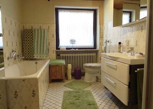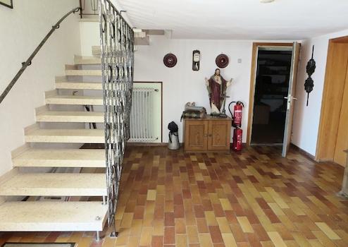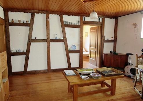 Das vordere Haus wurde ca. 1932 erbaut. Im Jahr 1972 wurde es aufwendig modernisiert und durch einen Anbau (Neubau) vergrößert. Die Wände und Decken sind tapeziert, haben Rauputz und sind teilweise mit Holz verkleidet. Die Fenster sind Doppel-Iso-Fenster aus dem Jahr ca.1985 / 2000. Die Speicherdecken sind isoliert. Beheizt wird das Haus über eine Öl-Zentralheizung, Bj. 1973. Der Ölbrenner wurde im Jahre 1979 erneuert. Das Bad im 1. OG. ist ausgestattet mit Badewanne, Waschbecken, WC, Dusche und Fenster. Das Duschbad im Dachgeschoss hat eine Dusche, ein Waschbecken, WC und ein Fenster.
