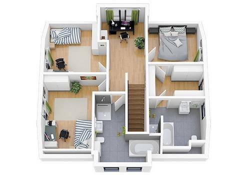 Das Haus verfügt über 3 geräumige Zimmer und 3 Schlafzimmer, was ideal für Familien oder Paare ist, die zusätzlichen Raum benötigen. Die 2 Badezimmer bieten Komfort und Bequemlichkeit im Alltag. Die Ausbaustufe "FastFertigPlus" umfasst die Sanitär-Grundausstattung und bietet Ihnen die Möglichkeit, bei der Erstellung Ihres Hauses mitzuwirken, während gleichzeitig die haustechnischen Gewerke von Fachbetrieben erledigt werden. Dadurch erhalten Sie ein hochwertiges Zuhause zu einem attraktiven Preis ab 344.375 EUR.