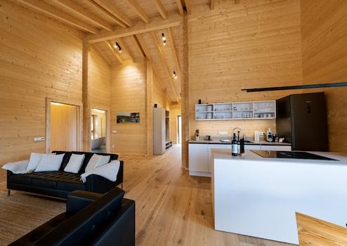 Wir verzichten im maximal möglichen Umfang auf die Verwendung von Kunststoffen im gesamten Bauprozess. Durch die Verwendung hochwertiger Polarhölzer, eine diffusionsoffene sowie massive Bauweise und den konsequenten Verzicht auf chemische Produkte, Farben, Lacke und Kunststoffe garantieren unsere Chalets ein gesundes und nachhaltiges Wohnerlebnis.