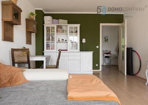 2-ZKB, Bad/WC, Balkon, Bett gross o. Dop., Einbauküche, Flur, Fussbodenfliesen, Internet, Küche, Kühl-/Gefrierkombi, Laminat, Teppichboden, TV, Waschmaschine, Zentralheizung, Appartmenthaus, Keine Tiere, möbliert, Nur für Einzelperson