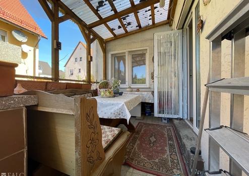 •Ein großer Südbalkon erstreckt sich entlang des ersten Obergeschosses und lädt zu entspannten Stunden im Freien ein, während man die Sonne genießt