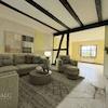 Das Badezimmer ist mit einer Badewanne ausgestattet. Die Fassade des Hauses zeigt sichtbares Fachwerk und teilweise verputzte Flächen, was dem Gebäude einen charakteristischen und ansprechenden Look verleiht.