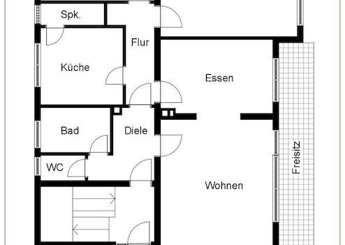 1. OG: 4 Zimmer mit Küche und Bad (TGL-Bad) u. Balkon