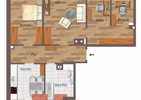 Durch leichte Grundrissanpassungen besteht die Möglichkeit, einen weiteren Raum zu schaffen, was zusätzliche Flexibilität für die Nutzung der Wohnung bietet.