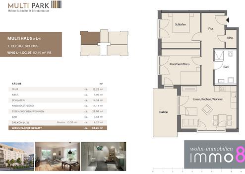 Die 3-Zimmer-Wohnung befindet sich im 1. Obergeschoss des Hauses L und ist Bestandteil des Neubau-Projektes MULTI PARK in Schrobenhausen.