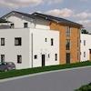 Der Entwurf für das zweistöckige Mehrfamilienhaus mit einem Schrägdach strahlt einen modernen und eleganten Stil aus. Die großen Fenster im Erd- und Obergeschoss ermöglichen lichtdurchflutete Räume und setzen stilvolle Akzente in der Architektur. Es sind insgesamt vier Wohnungen geplant, die jeweils etwa 90 m² groß sein werden. Der Wohn- und Essbereich ist offen gestaltet und bietet im Erdgeschoss eine Fläche von 35 m² und im Obergeschoss eine repräsentative Fläche von 39,5 m². Die Badezimmer können je nach Bedarf und den Bauvorschriften barrierearm oder barrierefrei gestaltet werden. Waschmaschine und Trockner werden geschickt in einer Nische platziert. Zusätzlich zum Hauptschlafzimmer gibt es einen Raum, der als zweites Schlafzimmer, Gästezimmer, Arbeitszimmer oder Kinderzimmer genutzt werden kann. Ein Gäste-WC rundet das Raumangebot ab.