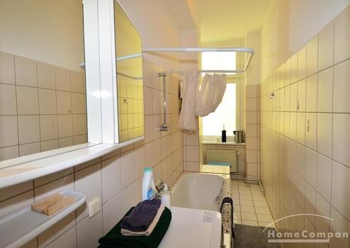 Einfach, aber geräumige möblierte 2-Zimmer-Wohnung in Prenzlauer Berg. Die Wohnung verfügt über 75qm und hat einen Balkon. Geräumige Küche mit Esstisch und Fenster. Gefliestes Tageslichtbad mit Badewanne. Das Schlafzimmer bietet einen großes Doppelbett, Schrank und einen Arbeitstisch. Unzählige Einkaufsmöglichkeiten (Edeka, dm-Markt) und Ausgehmöglichkeiten füßläufig erreichbar.