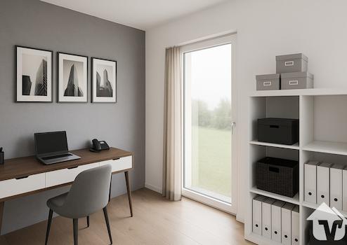 Die hier angebotene Doppelhaushälfte verfügt über ca. 168,05 m² Wohnfläche und eine schöne Terrasse mit Einfriedung als Kirschlorbeerhecke . Im Erdgeschoss befindet sich eine Wohn-/und Essküche, ein HWR, ein Hobbyraum, ein Büro, ein Abstellraum, ein Technikraum, sowie ein Gäste-WC. Das Obergeschoss ist insgesamt aufgeteilt in drei Schlafzimmer, ein Gästezimmer und zwei Bäder.