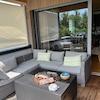 Der große Balkon ist vom Wohnzimmer aus zugänglich. Hier können Sie die Sonne mit Blick ins Grüne genießen.