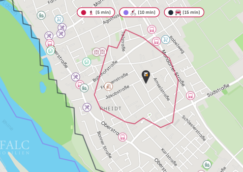 In Sachen Mobilität befinden sich Bushaltestellen in bequemer Reichweite, um die Flexibilität zu gewährleisten, die das moderne Leben erfordert. Die nächsten Stationen sind Rheidt Bahnhofstraße L269 (338m) und Rheidt Südstraße (399m). Der nächste internationale Flughafen und Autobahnen sind ebenfalls schnell zu erreichen, verkürzen Ihre Reisezeiten und erhöhen die Attraktivität dieses Standorts weiter.