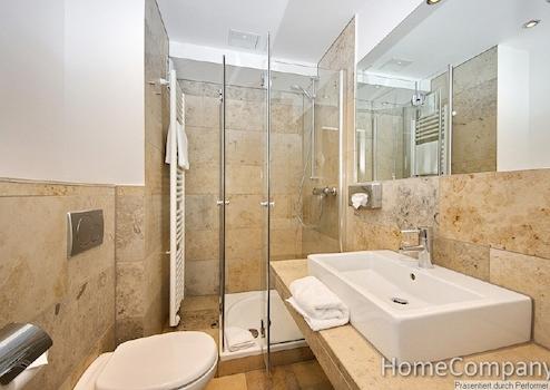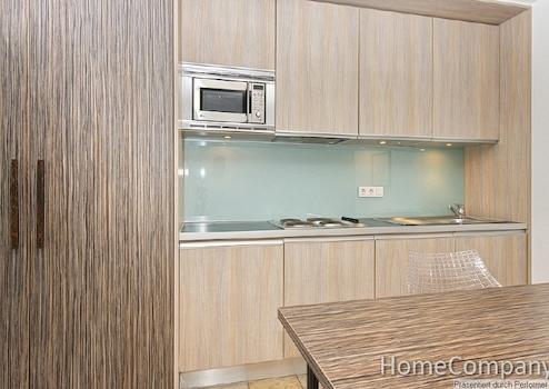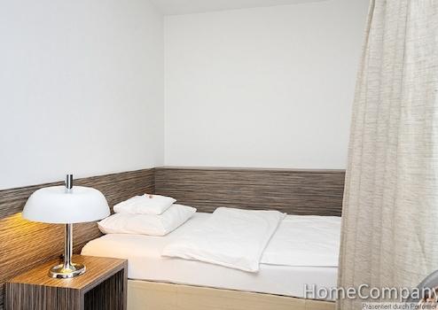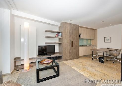 Das Apartment im 4.OG erreichen Sie bequem mit dem Aufzug. Die Einrichtung ist absolut hochwertig und außergewöhnlich im Design. Der Wohnschlafraum ist mit einem bequemen Sessel, einem Multimediamöbel mit modernem LCD-TV und anschließendem Kleiderschrank ausgestattet. Der geschützte Balkon bietet Ihnen einen herrlichen Blick auf die schicken Jugendstilfassaden der Nachbarschaft. Die separierte Schlafnische ist mit einem sehr bequemen Einzelbett ausgestattet. Die offene Küchenzeile verfügt über Spülmaschine, Kühlschrank, Mikrowelle mit Grillfunktion und einer Koch Zone mit 4 Kochplatten. Selbstverständlich finden Sie auch eine Grundausstattung an Geschirr und Kochutensilien vor. Der Tisch lässt sich als Ess- oder auch Arbeitstisch verwenden. Das wertige Bad hat eine geräumige Duschkabine. Die gesamten Bodenflächen und das Bad sind mit exklusiven Natursteinfliesen versehen, ideal für Allergiker. Die Miete beträgt 1285 € inklusive aller Nebenkosten, Energie und der Nutzung des Internetzugang. Wenn verfügbar kann ein Tiefgaragenstellplatz im Haus für monatlich 100 € angemietet werden. Wenn gewünscht ist auch ein regelmäßiger Reinigungsservice möglich, die Berechnung erfolgt nach Aufwand. Waschmaschine und ein Trockner stehen Ihnen zur Mitbenutzung im Keller zur Verfügung. Die Endreinigung obliegt dem Vermieter, erfolgt nach Aufwand und wird mit 35 € pro Stunde abgerechnet.
