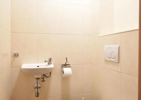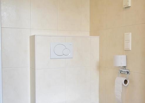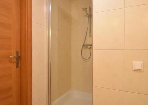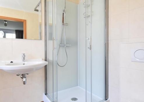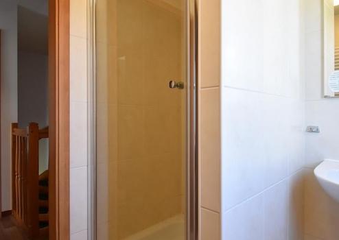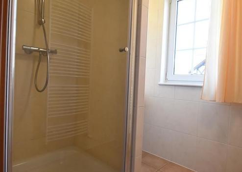 Das letzte Badezimmer hat eine neue Duschkabine und ein Waschbecken
