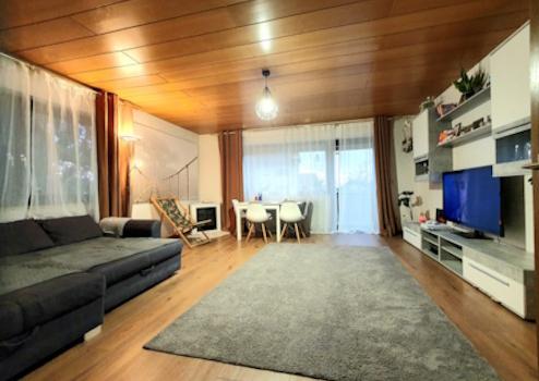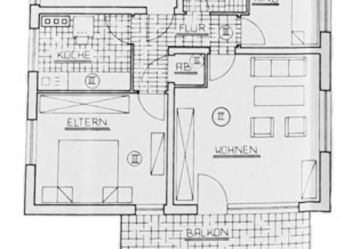 Die Wohnung verfügt über ein großes Wohnzimmer, eine Einbauküche, zwei Schlafzimmer, ein Bad mit Badewanne und Toilette, einen Abstellraum, eine Diele, einen großen Balkon und einen Kellerraum. Das Bad und die Küche sind mit Fliesen, das Wohnzimmer mit hochwertigen Laminatböden in Landhausdielen Optik und die restlichen Räume mit Teppichböden verlegt. Die Kunststofffenster sind zweifach verglast und mit Rollläden ausgestattet. In der Wohnung müssen aber auch paar Renovierungsmaßnahmen durchgeführt werden.