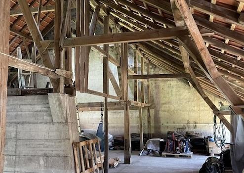 Das Dachgeschoss ist bereits ausgebaut. Die Bodenbeläge aus Fliesen und Laminat überzeugen nicht nur durch ihre ästhetische Qualität, sondern auch durch ihre praktischen Vorteile. Fliesen sind besonders pflegeleicht und langlebig - ideal für stark frequentierte Bereiche wie Küchen und Bäder. Laminat hingegen verleiht den Wohnräumen einen warmen und einladenden Charakter, ist dabei ebenfalls pflegeleicht und strapazierfähig.