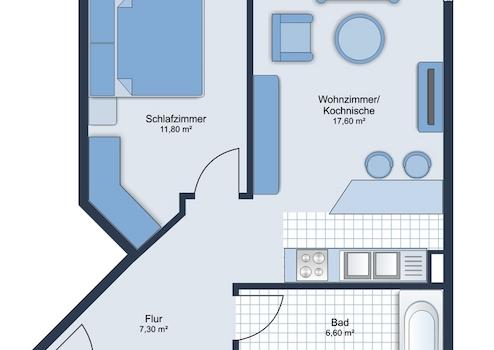 2 Zimmer - mit 43 qm Wohnfläche - Erdgeschoß