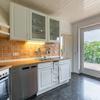 Geschlossene Küche (4,01 x 2,94 m) mit einfacher Einbauküche, ausgestattet mit Ofen, Keramikkochfeld, Geschirrspüler, Kühlschrank und Dunstabzugshaube.