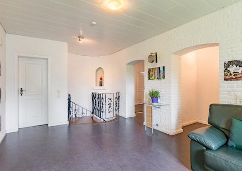 Großer, repräsentativer Flur/Eingangsbereich (5,33 x 3,37 m) mit Garderobe, Toilette und Wendeltreppe zum Souterrain.