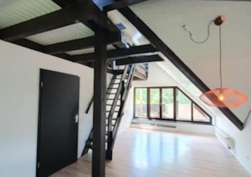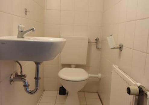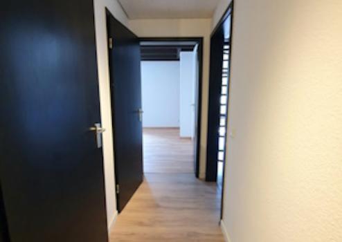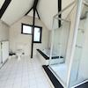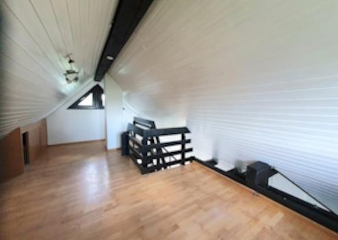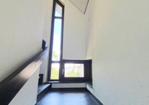 Die Wohnung teilt sich auf drei Ebenen. Im Eingangsbereich befindet sich das erste Zimmer, danach folgt folgt auf der zweiten Ebenen eine Diele, das Wohnzimmer mit dem Küchenbereich, das Elternschlafzimmer mit Bad an-Suite, einen Abstellraum mit Waschmaschinenanschluss, eine Gäste Toilette und das dritte Zimmer wird über eine Holztreppe von Wohnzimmer aus erreicht. Das Bad und die Küche sind mit Fliesen und die restlichen Räume mit Laminatböden verlegt. Die Massivholzfenster sind zweifach verglast und mit Rollläden ausgestattet. Das Bad bietet viel Platz für die Dusche zusammen mit der Badewanne, für die Toilette und für ein Waschbecken. Durch den Balkon auf einer Seite und die großen Fenstern auf die anderen Seite ist das Bad sehr hell und freundlich.