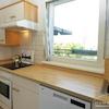 Die separate, helle Küche ist voll ausgestattet mit Kühlschrank, Gefrierschrank, Cerankochfeld, Backofen, Geschirrspüler und weiteren Geräten. Das Badezimmer verfügt über Badewanne, Waschbecken, WC, Fön und eine programmierbare Waschmaschine.