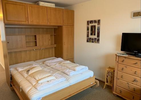Die Wohnung besteht aus einem Wohn-/Schlafraum mit Doppel-Schrankbett, Sofa und Essplatz, einer separaten kleinen Küche, Flur und einen kleinen Abstellraum. Das Duschbad -WC hat ein Außenfenster. Der sonnige Balkon befindet sich in Südausrichtung. Die Ausstattung ist für zwei Personen ausgerichtet. Ein Pkw-Garagenstellplatz gehört zur Wohnung, der Gemeinschaft steht ein Waschmaschinen-/Trocknerraum zur Verfügung. Baujahr ca. 1970. Ölzentralheizung, Verbrauchsausweis: 128,1 kWh/(m²a), Klasse D, Kaufpreis: 310.000,-- €