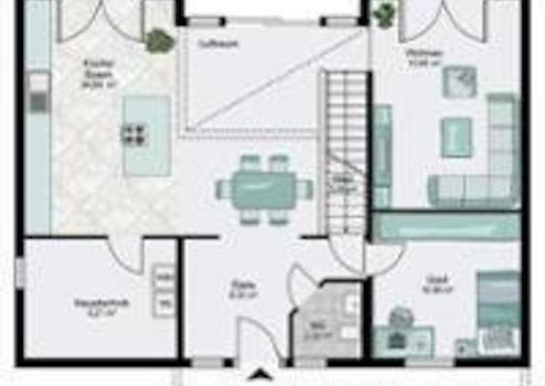 Der Angebotspreis ist inklusive Grundstück und bezieht sich auf die Standard-Ausbaustufe Fast-Fertig-Plus. Ihre Eigenleistungen: Spachtel-, Tapezier- und Malerarbeiten, Bodenbeläge, Innentüren. Selbstverständlich erstellen wir Ihr
