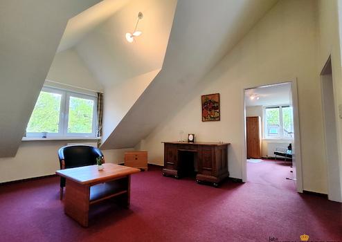 Flur, Gäste-WC, Küche, Wohnzimmer, Wintergarten und das Masterbad im DG sind mit einer Fußbodenheizung ausgestattet. Nordwestlich im Gebäude befindliche ehemalige Räume der Tierarztpraxis werden heute als Büro und Abstellraum genutzt.