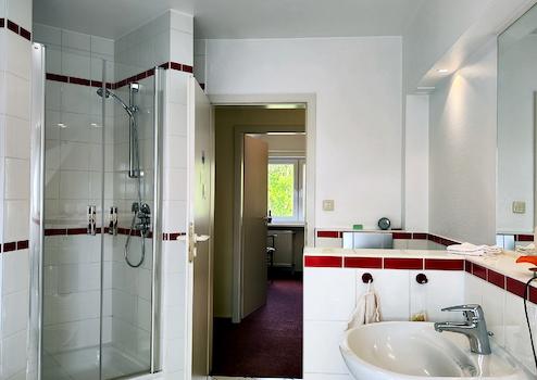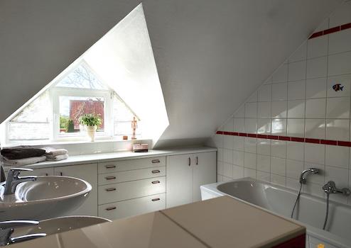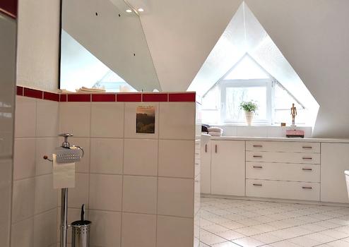 Insgesamt 9 Wohnräume nebst Küche, HWR und Gäste-WC im EG und kleinem Vorratsraum an der Küche sowie das Masterbad mit Badewanne und Dusche im DG sind im Objekt vorhanden. Gäste-WC und Masterbad glänzen mit guter funktioneller Ausstattung in hervorragendem Zustand.