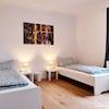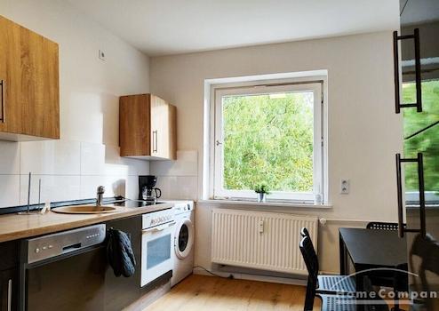 2 Zi.Whg., möbliert, Erdgeschoss, WG-geeignet - 2 separate Schlafzimmer mit Einzelbetten, Küche als Gemeinschaftsraum. Bad mit Dusche. Miete 1399,- € inkl. Neben- und Energiekosten sowie WLan.