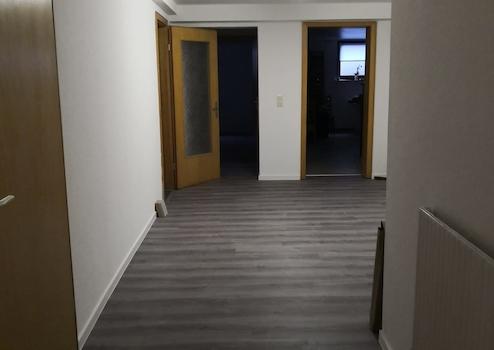 Hinzu kommt ein mittlerweile zum "Souterrain" ausgebauter KG-Bereich: 2 Zimmer / Küche / Bad (Dusche m. Tageslicht) / ca. 75 m². Die weiteren Kellerräume verfügen zudem noch über weitere ca. 61 m². Das Badezimmer, die Küche, das Schlafzimmer und die Diele und Flure sind komplett neu (Ende 2024)!