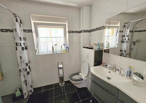 In dem Haus ist eine Einbauküche vorhanden. Das Bad des Hauses verfügt über eine Badewanne und eine Dusche. Selbstverständlich handelt es sich um ein Tageslichtbad. Die Dusche verfügt über eine Duschkabine, nicht nur über einen Vorhand.