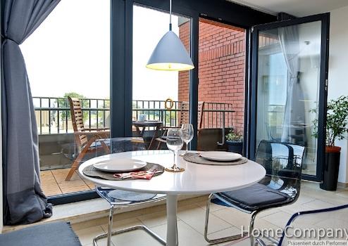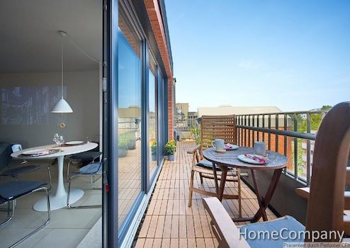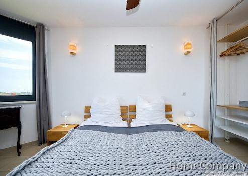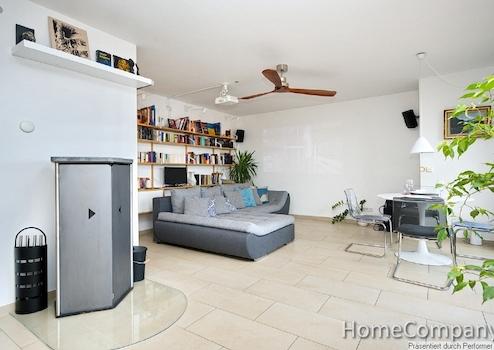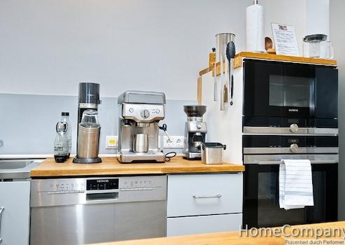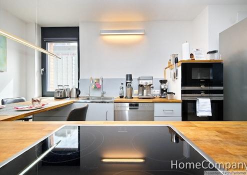 Dein Luxus-Penthouse zum zuhause fühlen auf der 7. Etage! Genieße den Panorama-Ausblick auf den Düsseldorfer Medienhafen und Rhein. Komplett ausgestattete Einbauküche mit Spülmaschine, Kochinsel mit Ceran-Kochzone, Backofen, Mikrowelle, Toaster, Kühlgefrierkombination, Profi-Espresso-Maschine. Der Wohnbereich ist ausgestattet mit einem Kamin, einer gemütlichen Sitzlandschaft und einem Esstsich für 4 Personen. Das Home-Cinema System mit Beamer ist mit Apple Music, Prime- und Netflix-Streaming ausgestattet. Die Dachterrasse hat Sitzgelegenheiten zum Beobachten des Sonnenauf- und -untergangs. Das Schlafzimmer ist mit 2 Einzelbetten, die zu einem Doppelbett zusammengestellt werden können, und genügend Platz für Ihre Kleidung ausgestattet. Walnussholz-Deckenventilatoren sorgen im Wohnbereich und Schlafzimmer für behagliches Klima. Das geschmackvolle Bad verfügt über eine große Wanne mit installierter Duschvorrichtung, ein Komfort-WC und eine Waschmaschine.