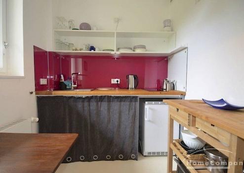 Helle, renovierte Ein-Zimmer-Wohnung in Berlin Tempelhof, mit Balkon und Blick zum grünen Hof. Dieses Mietobjekt ist komplett eingerichtet, mit schönem Vintage- und schlichtem Ikea-Mobiliar. Ein hochwertig eingerichtetes Bad gehört ebenfalls zum Inventar. In der Küche kann man gemütlich sitzen, es gibt ein Glaskochfeld und einen kleinen Ofen. Schnelle Internetverbindung vorhanden (500mbit/sek).