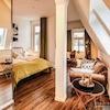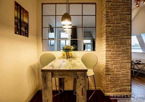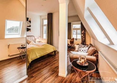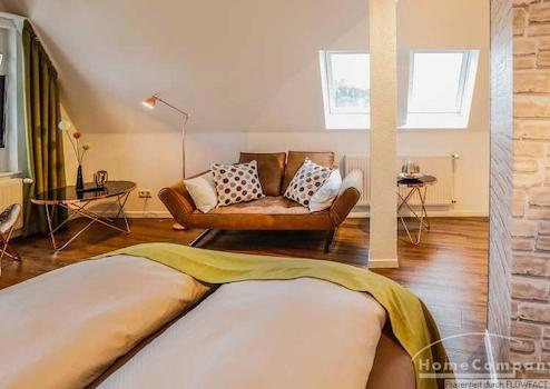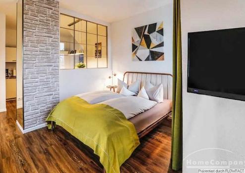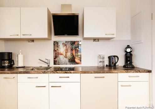 Das helle und stylisch eingerichtete Studio liegt in der 3. Etage eines historischen Gebäudes. Dieses schicke Studio bietet all das, was man zum Wohlfühlen braucht. Die Küchenzeile beinhaltet inklusive eines kleinen Küchenherdes mit Abzugshaube, eines Kühlschrankes und einer Spülmaschine. Das helle Bad ist mit einer neuen Glasduschkabine ausgestattet. Ob man abends noch ein wenig arbeiten möchte und ein Highspeed WLAN benötigt oder einfach nur auf der Couch sitzt und sich einen spannenden Krimi im Fernsehen anschaut, dieses Studio lässt keine Wünsche offen.