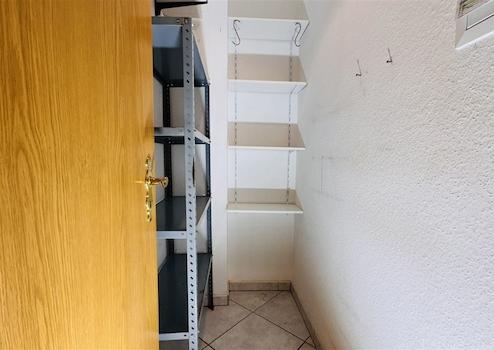 Von hier aus erreichen Sie zu Ihrer Linken einen praktischen Vorratsraum sowie vor Kopf die großdimensionierte Wohnküche mit hochwertiger Einbauküche BJ 2000.