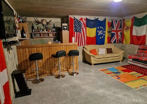 Der Keller ist ausgestattet mit einem ca. 40 m² großen Hobbyraum mit Bar, WC,