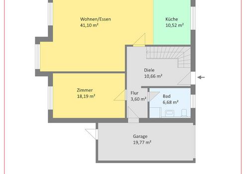 Im Erdgeschoss befindet sich der ca. 50 m² große, helle,
