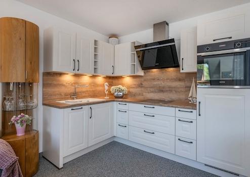 * hochwertige Einbauküche: Spülmaschine, Kühlschrank, Cerankochfeld & Backofen