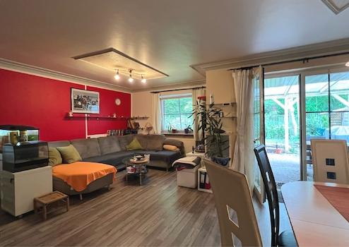 1998 in massiver Bauweise errichtet bietet diese schöne Immobilie viel Platz für die große Familie. Dabei ist das Dachgeschoss auch als Einliegerwohnung nutzbar und somit auch für die Vermietung interessant. Die rund 182 m² Wohnfläche teilen sich insgesamt auf 6 Zimmer, zwei Bäder, zwei Küchen und ein Gäste-WC auf. Sämtliche Räume sind großzügig geschnitten und verfügen über viel Tageslicht. Beide Etagen sind mit einer Einbauküche ausgestattet. Der Spitzboden ist ausgebaut. Eine feste Treppe kann hier schnell und unkompliziert eingebaut werden. Die Gaszentralheizung von 2021/22 versorgt die Immobilie mit Wärme und Warmwasser. Das Erdgeschoss ist teilweise mit Fußbodenheizung ausgestattet. Zusätzlich sorgt ein Kaminofen im Wohnzimmer für Behaglichkeit. Die doppelt verglasten Holzfenster sind auf der Vorderseite des Hauses mit innenliegenden Sprossen versehen. Die Putzfassade wurde zweifarbig gestrichen. Das Haus verfügt über einen breiten Dachüberstand und über eine gemütliche Südterrasse, die ebenfalls überdacht ist. Eine Doppelgarage mit Abstellraum und Nebenraum mit Dusche und WC bietet viel Platz für Hobby und Beruf. Das Haus ist durch eine Tür direkt mit der Garage verbunden, so dass Einkäufe bequem verstaut werden können und man auch an Schlechtwettertagen trocken ins Haus kommt. Für die Gartenbewässerung befindet sich eine Zisterne mit ca. 7.000l Fassungsvermögen im Garten.