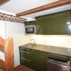 Im Erdgeschoss des Objekts befindet sich der gemütliche Wohnraum mit offener Küche, Couch und dänischem Kaminofen. An der Wand hängt ein großer Flachbildfernseher. Der Wintergarten mit Esstisch und Schreibtisch mit I-Mac lädt zum Entspannen ein.