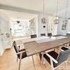Das lichtdurchflutete Erdgeschoss hat einen grossen Wohnraum, einen Essbereich für bis zu 12 Personen und eine offene voll ausgestattete Küche mit Insel.