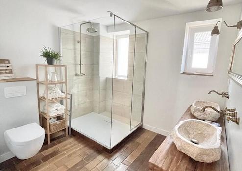 weiteres geräumiges Duschbad mit Doppelwaschtisch