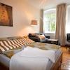 Im "Balkonzimmer " befindet sich ein ausziehbares Schlafsofa mit Lattenrost (140cmx200cm) und Matratzenüberzug , so dass die Möglichkeit besteht auf diesem auch über einen längeren Zeitraum erholsam zu schlafen.Ein Tv von der Firma Panasonic steht zur Verfügung.Im zweiten Zimmer befindet sich ein Sofa sowie ein Eichenschreibtisch und ein Eichenbett mit einer hochwertigen Kaltschaummatratze (140cmX200cm).